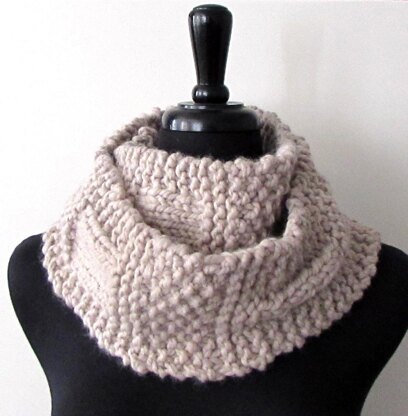 This scarf knits up quickly when made from bulky and super bulky weight yarns. Just one skein of Lion Brand Yarns Wool- Ease Thick & Quick in the shade Linen was used to make the scarf in the photos. You will get a scarf that wraps around your neck two times. If you wish to make the scarf longer please note that you will need more yarn.