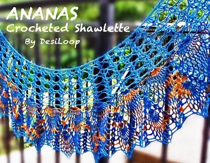 Ananas’ is Hindi for ‘Pineapple’. This is my take on a shallow shawlette made by short row shaping. The sample is made all in one-piece from the starting with the body and then edging. At first glance you wouldn’t notice that this gorgeous lace is made up of some pretty basic stitches. This will be another one of those go to pieces when heading out. The choice of yarn can transform this shawlette from simple to posh.