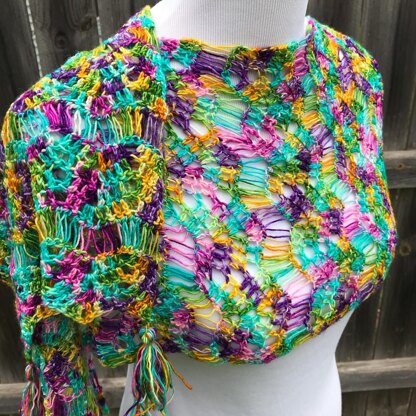 Ananda is the Sanskrit word for bliss and this yarn color fills me with a happy bliss. It’s a rectangular shawl in a wonderful ripple stitch with an added a lace technique for effect. Broomstick lace is the technique incorporated into this ripple pattern. This is an intermediate to challenging pattern.