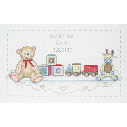Anchor The Toy Shelf Birth Sampler Cross Stitch Kit - 33cm x 20cm