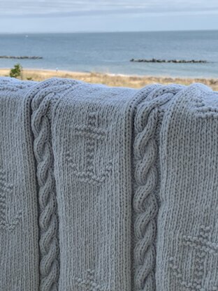This nautical blanket is knit using worsted-aran weight yarn with easy to follow chart repeats.