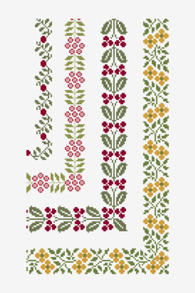 Choose between different ancient-style floral borders with this free cross stitch pattern. Use these designs to frame an existing project, or use as an edging pattern for a cushion cover, or table cloth. Your options are endless with this versatile pattern!