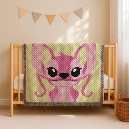Created using the C2C crochet technique, features Angel from Stitch sharing a loving vibe - perfect cozy throws, themed afghans, or playful kids’ room decor.