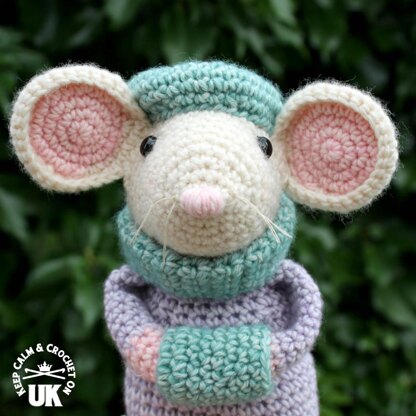 Introducing little Angelica Mouse, she’s soft and pretty with her little pink nose and, attired in a sweet beret and warm jumper dress, she would make an ideal companion for any winter adventures. Angelica the Mouse Amigurumi would make a perfect friend for little ones or for you – and you can customise her dress and hat to match any occasion.