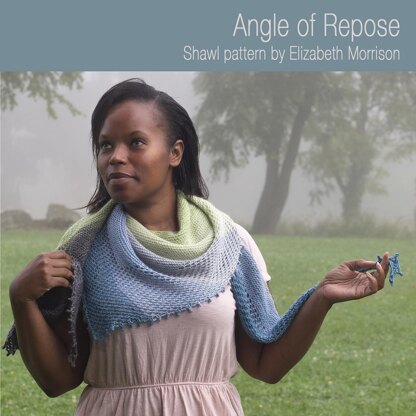 This asymmetrical triangle shawl has an angled wedge of pebbly mesh fanning gently along one selvedge. With no definitive right and wrong sides, it’s easy to knit and easier to wear.