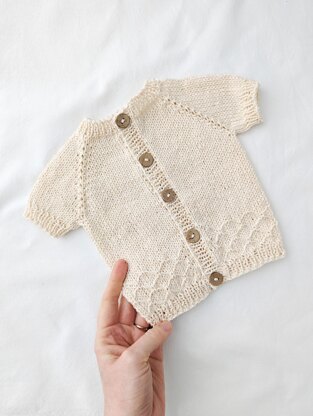 This is the perfect summer baby cardigan knitting pattern. The Angus Summer Cardigan is a raglan cardigan knit top down with options for long or short sleeves.