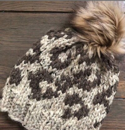 Inspired by a love of all things animal print, this squishy, stylish hat knits up quickly with two contrasting colors of bulky yarn on circular needles. In addition to the traditional colors like brown, cream, and black, this print looks just as fabulous with blue, pink, or green. Pom or no pom? I’ll leave that up to you, go wild!