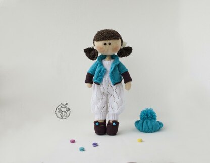 Materials needed • 2 double-pointed needles or circular needles in a size suitable for the yarn weight you are using. I recommend using needles a size or two smaller than the yarn calls for, to produce a firm fabric. İ used Needles size 1 (2,5mm) , size 5 (3.5mm) , size 6 (4mm). • Cream (color 1005) yarn Special Stylecraft (100% acrylic 304 meters / 100 grams) for doll • Turquoise (color 1068) yarn Special Stylecraft (100% acrylic 304 meters / 100 grams) jacket and beret • White yarn (color 10028) Bergere de France Calinou 75% Acrylic, 25% Wool 50g/185m (for trousers) • Brown yarn (color 10052) Bergere de France Calinou 75% Acrylic, 25% Wool 50g/185m for jacket and shoes
