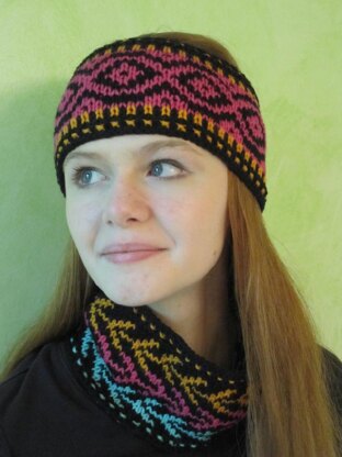 These colorful and quick accessories are a great way to dip your toe into stranded colorwork. The pattern includes 3 designs: 2 headbands and 1 neck warmer. They are worked in the round from edge to edge and use between 15 and 20 grams of three to four different colors for each piece. A great stash-busting project!
