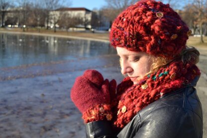 Notes The hat is worked in the round from the brim up. Only 1.5 skeins are used leaving enough yarn to work the cuff of the matching mittens.