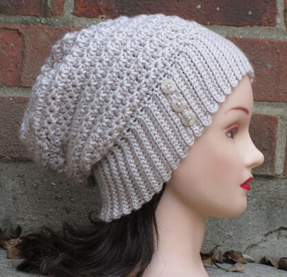 Anneliese is a sweet, sophisticated slouchy beanie featuring a wide, slanting knit-look brim and a lovely star stitch pattern, and is accented with 3 small buttons. The pattern comes with easy to follow step-by-step instructions and helpful, clear photos.