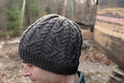 I love a bold cable in a masculine color on a guy. This pattern features distinct cables all around, some interesting lines at the crown and YOTH's stunning domestic Rambouillet yarn.