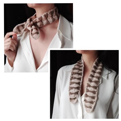 This neck scarf adds a modern, geometric touch to your wardrobe. With its simple two-tone design, it creates clean shapes through an easy construction, perfect for adding a subtle accent to any everyday outfit.
