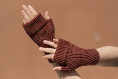 The Anticline mitts are a stylish, modern set of cuffed fingerless gloves featuring a striking pattern of twisted ribbing and diagonal cables that wrap elegantly around the wrist and hand. The cozy ribbed cuffs are designed to be worn turned back for the convenience of fingerless gloves, but can also be unfolded for extra warmth on the chilliest days. These mitts work up beautifully in both solid and tonal hand-dyed yarns, making them perfect for that skein of sock yarn in your stash that’s just too gorgeous to wear on your feet.