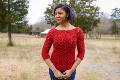 Living in a warmer climate encourages a knitter to be creative in choice of projects. I wanted this sweater to be a bit of a paradox: simultaneously cozy yet breathable. This lace repeat worked at a loose gauge in an alpaca yarn achieves just that. Use a cotton or bamboo blend or experiment with even lighter weight yarns, just make sure to achieve the pattern gauge on your larger needles so that your finished measurements work out for the right fit. The sweater is worked top-down in the round, all in one piece. Stitch pattern is both written and charted. It is modeled in Size S with 2”/5 cm negative ease at the bust. The stretchy lace has a lot of give; choose the size within 2”/5 cm of your actual chest whether it is a larger or smaller number. Pattern is designed for knitters comfortable with following an intermediate level lace pattern.