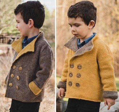 Antoine is a reversible unisex jacket. Perfect for transitional seasons, when a lighter coat may still be needed, Antoine shows generous measurements to allow for growth and plenty of movement. Each layer of the jacket is worked in one piece: the body is worked flat from the bottom up and sewn at the shoulders; set-in sleeves are worked top-down, shaped with short-rows and worked in the round; the collar is worked last. The two layers are then assembled to form the reversible jacket. Pockets to gather many treasures can be added on one side, or left out all together.