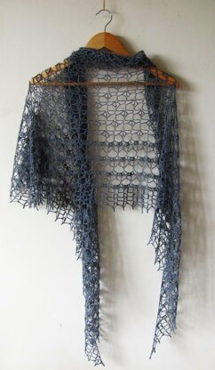 Shawl has straight triangular shape and is worked top-down. This project needs hard blocking to open up the lace pattern.