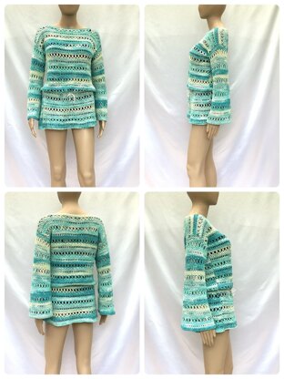 This is a versatile pattern for a summer top. You can make a crop top, sleeveless vest, oversized tee, summer sweater, tunic, or even a beach bikini cover. You will also have an option for short sleeves, straight sleeves, or flared sleeves. Mix and match as you like to make many variations with just 1 pattern!