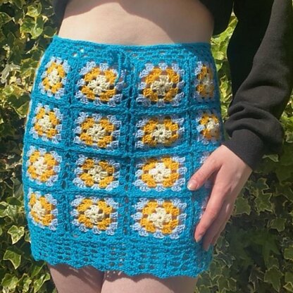 Each square is joined as you go, so there is no seaming afterwards. You can use up all your scraps to make this skirt. The waist is tied to make it easily adjustable.