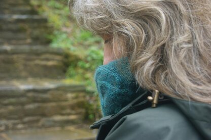 Aotara is deep and snuggly cowl, patterned with a continuous Celtic knot made of three interweaving bands.