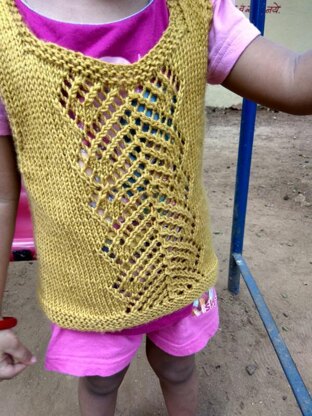 Apoorva is a seamless, bottom up kid’s vest, knit in the round with a central lace panel that features the double herringbone mesh stitch. Apoorva is named after my angel baby girl and means “never before”, “unique” or “unprecedented”. This unisex vest is available in 7 baby, toddler and child sizes, ranging from Preemie and Newborn up to 6 years.*