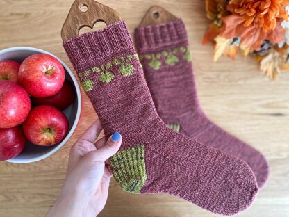 Apple Picking socks are the perfect adorable fall socks. Cozy up with this new pattern while drinking a cup of warm apple cider or go apple picking. In this pattern, you’ll also receive a cheat sheet for 3 different sets of heel instructions. For the sample, I used a heel flap and gusset, but I also include instructions for an afterthought heel and a short row heel.