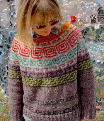 You can choose to make your garment with two contrasting colors or several…or perhaps experiment with gradients and fades…FADIENTS! It’s up to you! (The sample sweater shown combines 8 different yarn colors.)