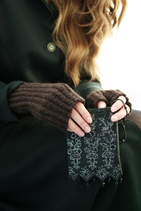 Fingerless gloves are very useful accessories. They keep your hands warm while you work in a chilly office, browse at a used book store or play the saxophone in the park. They are fun to knit because they don’t involve a big commitment of time or yarn, and one size fits most so you can make them for yourself or give them away as gifts and feel confident that they’ll fit the person who’s going to wear them. The allover baby cable-rib pattern provides extra warmth without adding bulk. They’re thin enough to allow unrestricted movement, but still warm enough for a West-Coast winter. Difficulty: intermediate Finished measurements: 61/2”/16.5cm wrist circumference, 6”/15cm hand circumference. These gloves are quite stretchy and will fit up to 9”/23cm circumference comfortably. 81/2”/21cm long