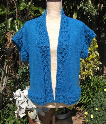 This is a casual and versatile gilet, suiting many seasons. The main parts of the design are in stocking stitch, with all the borders worked in a cluster stitch which give great definition.
