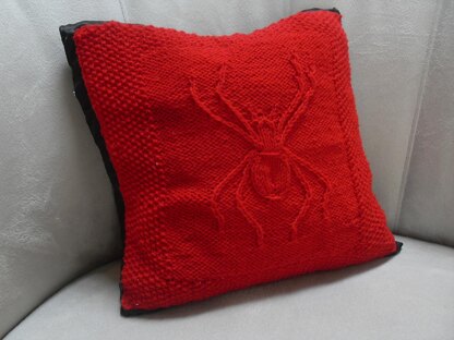 A spooky little arachnid throw pillow. This pillow can use any type of yarn, can be easily adjusted in size,and can have a fabric or knitted back. Also knits surprisingly quick!