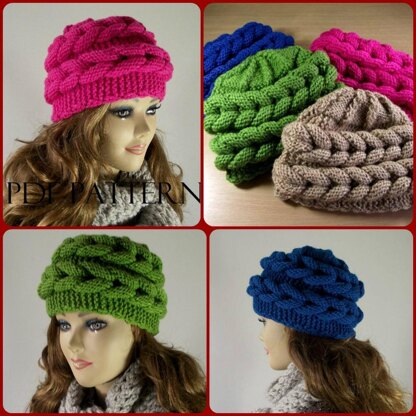 Lovely knitting hat, great for all beginners, used the basic knitting stitch in a unique and easy technique to form this bulky braids around the hat!