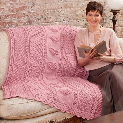 Aran Hearts Throw in Red Heart Soft Solids - LW2947