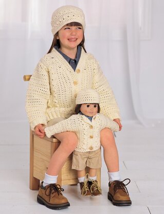 Aran Look Cardigan and Cap Set (crochet) in Bernat Super Value
