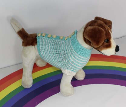 This is my Aran Stripe Back Button Up Garter Stitch Dog Coat knitting pattern. This range of dog coats have been especially designed for dogs who do not like coats pulled over their heads. It is worked flat in any aran (10ply) yarn of your choice on 5mm needles. The pattern provides full instructions for 4 dog coat sizes: S (Chihuahua), M (Jack Russell), L (Boxer) & L (Labrador) and there are also numerous photos to help you throughout.