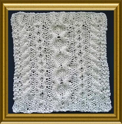 Learn how to knit this Aran style pattern called Stepping Stones with a chart and written out directions. Use worsted weight cotton yarn and size 8 US (5 mm) or 9 US (5.5 mm) knitting needles