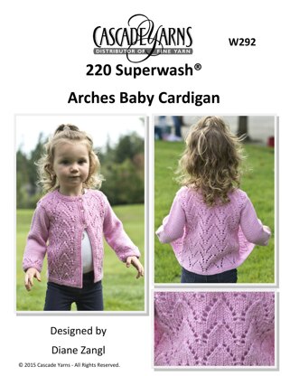 Arches Baby Cardigan in Cascade 220 Superwash Quatro - W292 est un modèle de Tricot gratuit par Diane Zangl, disponible au format PDF téléchargeable et comprend des instructions en Anglais. Super amusant à réaliser, ce modèle pourrait être votre prochaine œuvre d'art !