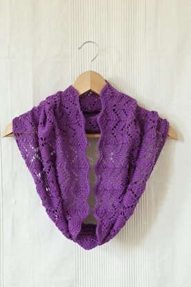 Inspired by the flow and curves of gothic arches and vaults, Arcos is a tall summer cowl knitted in a soft cotton yarn. The cowl starts with a repetition of stacked arches almost to the midpoint. Then the patterning slowly develops into a diamond and leaves pattern and ends with a scalloped edge, matching its beginning. Arcos uses a limited amount of easy to remember lace pattern stitches as building blocks. Stacking these stitches in various ways creates a different patterning on the cowl, making it fun to see how the stitches flow into one another. Wear the lacy Arcos cowl on an evening out or casually with a pair of jeans.