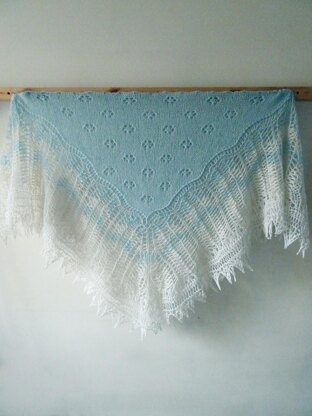 Arctic Air is the second of the three Arctic Aura haps that I designed in 2015. It is the loftiest of all the pieces, and its colours are meant to bring Arctic breeze to your everyday life and make you feel refreshed every time you wrap yourself with this hap.