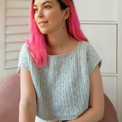 - Sample top yarn: Juniper Moon Farm Zooey. Number of balls listed for cropped version.