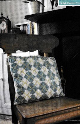 This is a pattern for Argyle Cushion Cover, originally published in Knit magazine. It has a stocking stitch back, with intarsia front and moss stitch bands. The yarn used is cotton, and it would also work well in a wool or wool mix knitting to the same tension. The chart has been changed slightly to make t fit in better with the size. Photos Knit Magazine.