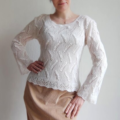 Ariadne is a lace sweater with a traditional Estonian nupp stitch and crochet neck edge.