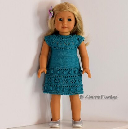 This dress features a bobble stitch and lace pattern in sizes to fit an 18-19.5” Doll like American Girl, Gotz Precious Day Girl, Gotz Hannah, Happy Kidz, and other similar sized dolls. The dress is worked in rows downward from top.