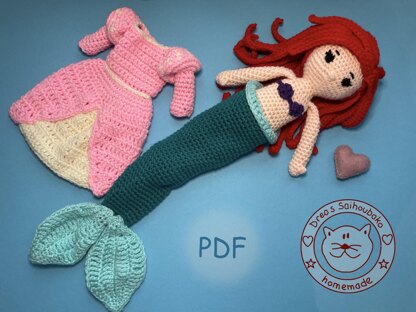 With yarn length 150m/50g this doll is about 30 cm high. This doll is a dress-up doll.