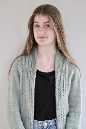 **FINISHED MEASUREMENTS:**Neck opening: 11, (14.2, 17.3), 21.3”/ 28, (36, 44), 54 Yoke length: 7.5, (7.5, 7.9), 8.1“ / 19, (19, 20), 20.7 cm Fronts: 8.7, (9.1, 10), 10.5“ / 22.3, (23.2, 25.5), 26.8 cm Opening front.: 1.6, (2.7, 2.7), 2.7“ / 4, (7, 7), 7 cm Total chest circ.: 38, (42, 45.7), 47.5“ / 96.3, (107, 116.3), 121 cm Body length: 17, (17, 17), 17“ / 43, (43, 43), 43 cm Arm length: 15.3, (15.3, 15.3), 15.3“ / 39, (39, 39), 39 cm