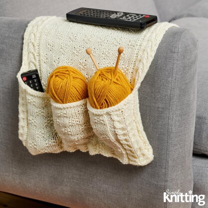 Perfect for keeping all your essentials at your fingertips, this cabled armchair tidy has three handy pockets. By Monica Russel