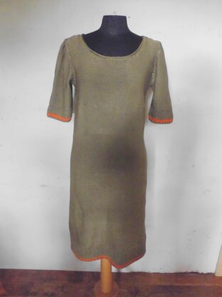 ARMERINA - a wonderful dress in a lovely casual style with a relaxed but close fit. Plain knitting in reverse with a small tip-coloured border at the body bottom, on the sleeves and round the neckband. Above the coloured border there is a border in moss stitches worked from a chart - and this on the sleeves as well but more narrow. The front is shaped after dressmaking principles. The model is not difficult to make. Worked flat. To dress in an elegant way - also in knitwear for a dress. The mesurements throughout the pattern are given in cm as well as in inches. Difficulty of execution of the garment measured from 1 (beginner) to 5 (advanged): 3.