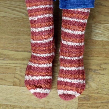 It works great with colorful sock yarns that are so hard to find good patterns for if miles and miles of stockinette drive you crazy.