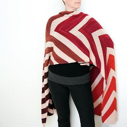 Big and bold! This wrap features asymmetric garter chevrons that move in two directions down the length of the shawl. Worked from side to side on the bias, it's an easy knit that uses a little bit of texture and a whole lot of colour to create a dynamic result. Large enough to wrap and stay put, it's the perfect showcase for your most treasured hand dyed skeins!