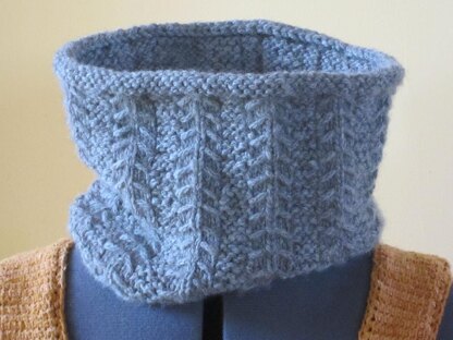 This cozy cowl is knit with a Aran weight yarn, and is fast and fun.