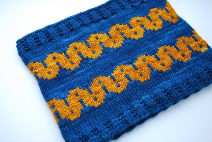 Vibrantly colored yarn and a swirling colorwork pattern come together to create a cozy cool weather accessory. This cowl works up quickly using two colors of Rios, and the stranding on the inside creates extra warmth.